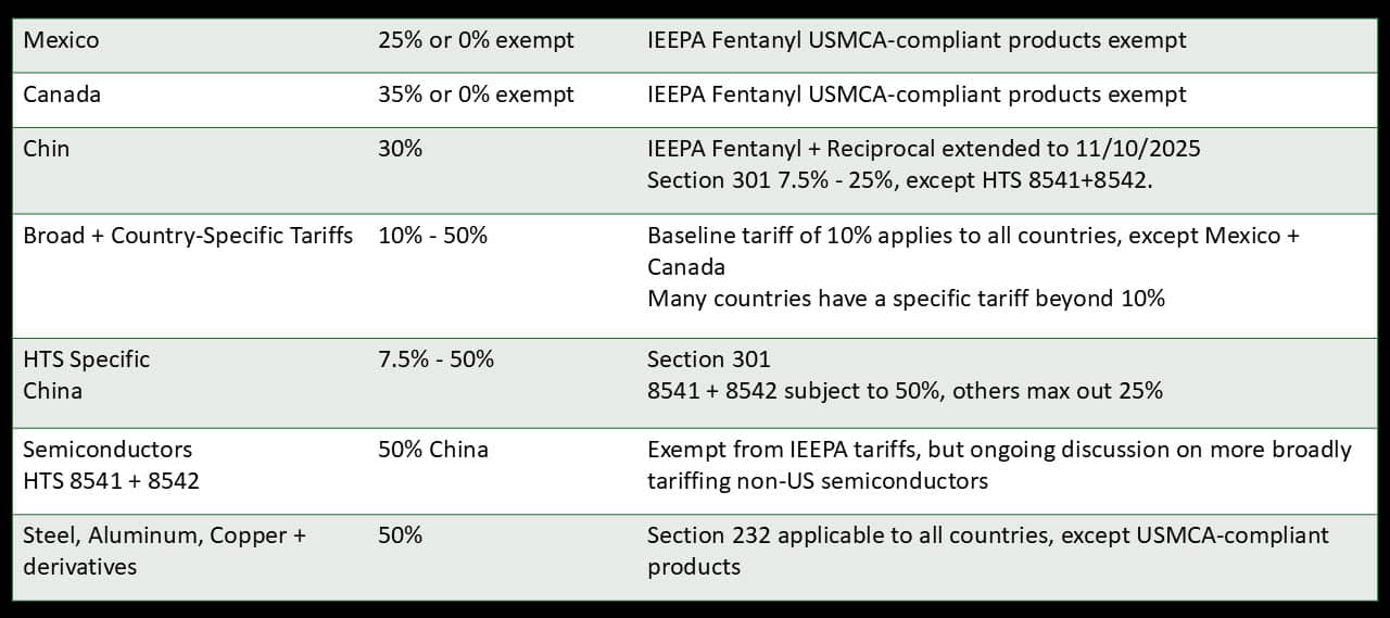 With reciprocal tariffs in place and China delaying increases, volatility has eased to its lowest level this year, but tariffs remain historically high and continue to impact planning.